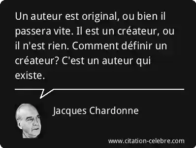 Un auteur est original, ou bien il passera vite. Il est un créateur, ou il n'est rien. Comment définir un créateur? C'est un auteur qui existe.
