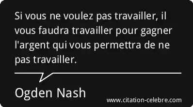 Si vous ne voulez pas travailler, il vous faudra travailler pour gagner l'argent qui vous permettra de ne pas travailler.