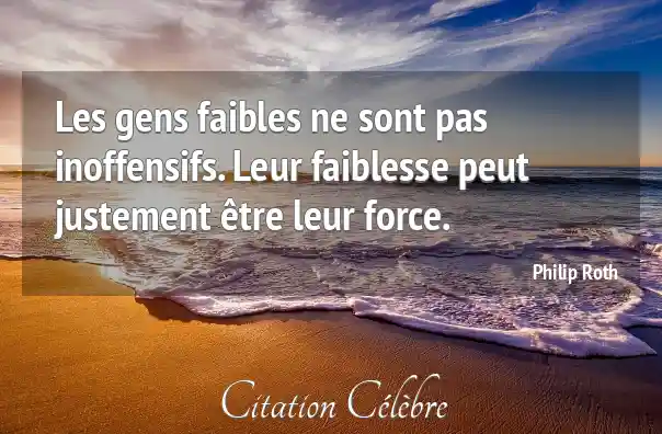 Les gens faibles ne sont pas inoffensifs. Leur faiblesse peut justement être leur force.