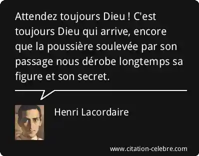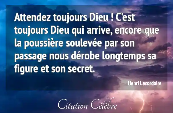Attendez toujours Dieu ! C'est toujours Dieu qui arrive, encore que la poussière soulevée par son passage nous dérobe longtemps sa figure et son secret.