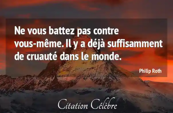 Ne vous battez pas contre vous-même. Il y a déjà suffisamment de cruauté dans le monde.