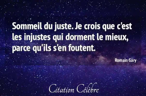 Sommeil du juste. Je crois que c'est les injustes qui dorment le mieux, parce qu'ils s'en foutent.