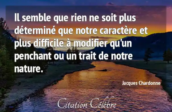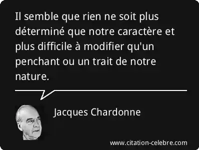 Il semble que rien ne soit plus déterminé que notre caractère et plus difficile à modifier qu'un penchant ou un trait de notre nature.
