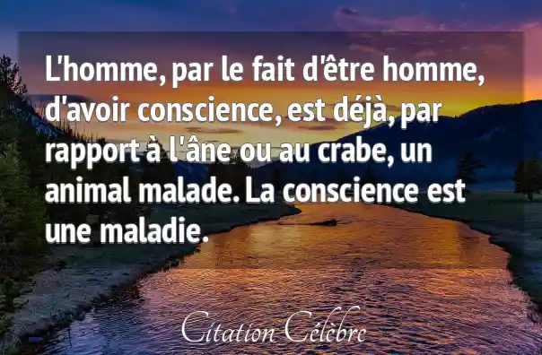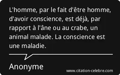 L'homme, par le fait d'être homme, d'avoir conscience, est déjà, par rapport à l'âne ou au crabe, un animal malade. La conscience est une maladie.