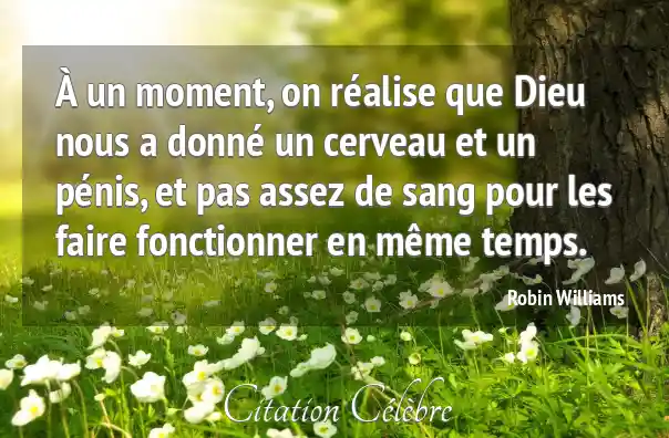 À un moment, on réalise que Dieu nous a donné un cerveau et un pénis, et pas assez de sang pour les faire fonctionner en même temps.