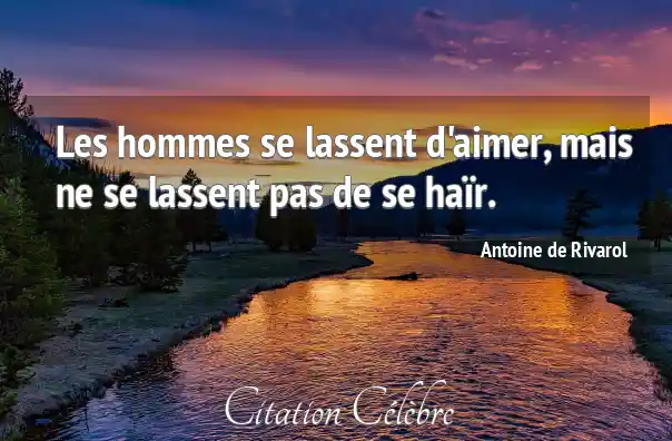 Les hommes se lassent d'aimer, mais ne se lassent pas de se haïr.