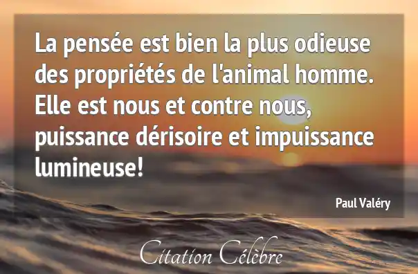 La pensée est bien la plus odieuse des propriétés de l'animal homme. Elle est nous et contre nous, puissance dérisoire et impuissance lumineuse!