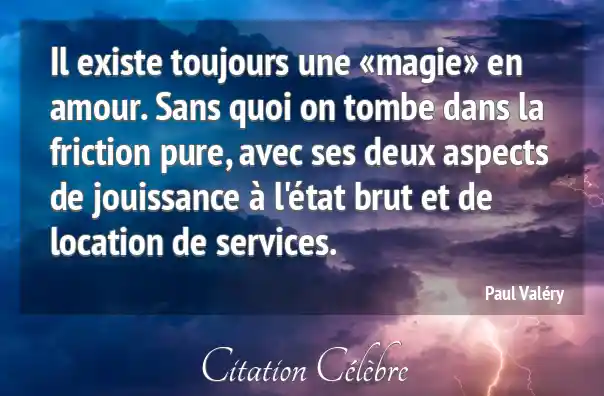 Il existe toujours une «magie» en amour. Sans quoi on tombe dans la friction pure, avec ses deux aspects de jouissance à l'état brut et de location de services.