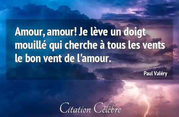 Amour, amour! Je lève un doigt mouillé qui cherche à tous les vents le bon vent de l'amour.