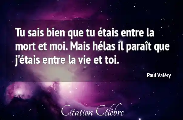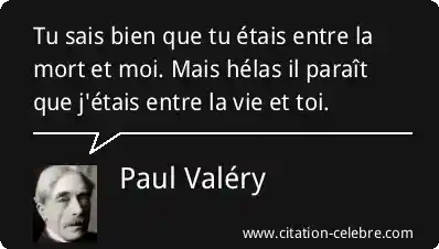 Tu sais bien que tu étais entre la mort et moi. Mais hélas il paraît que j'étais entre la vie et toi.
