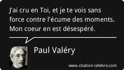 J'ai cru en Toi, et je te vois sans force contre l'écume des moments. Mon coeur en est désespéré.