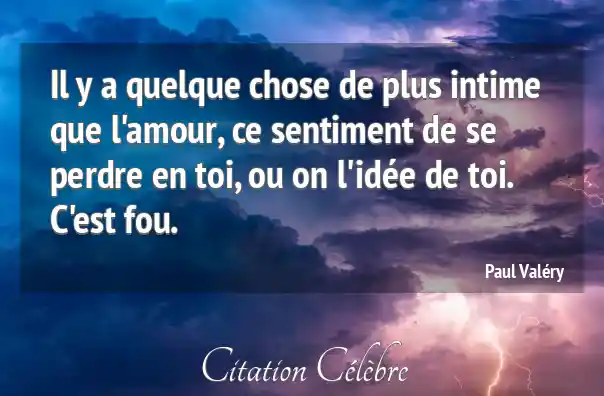 Il y a quelque chose de plus intime que l'amour, ce sentiment de se perdre en toi, ou on l'idée de toi. C'est fou.