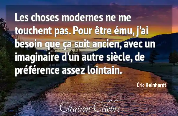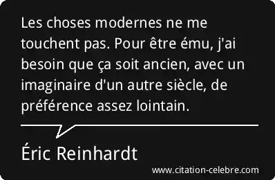 Les choses modernes ne me touchent pas. Pour être ému, j'ai besoin que ça soit ancien, avec un imaginaire d'un autre siècle, de préférence assez lointain.