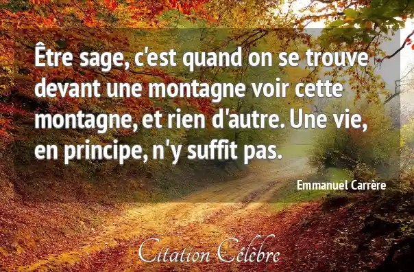 Être sage, c'est quand on se trouve devant une montagne voir cette montagne, et rien d'autre. Une vie, en principe, n'y suffit pas.