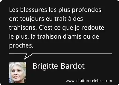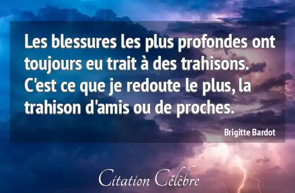 Les blessures les plus profondes ont toujours eu trait à des trahisons. C'est ce que je redoute le plus, la trahison d'amis ou de proches.