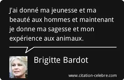 J'ai donné ma jeunesse et ma beauté aux hommes et maintenant je donne ma sagesse et mon expérience aux animaux.