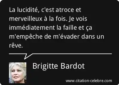 La lucidité, c'est atroce et merveilleux à la fois. Je vois immédiatement la faille et ça m'empêche de m'évader dans un rêve.