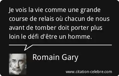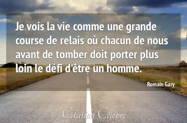 Je vois la vie comme une grande course de relais où chacun de nous avant de tomber doit porter plus loin le défi d'être un homme.