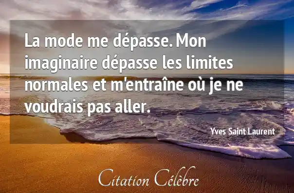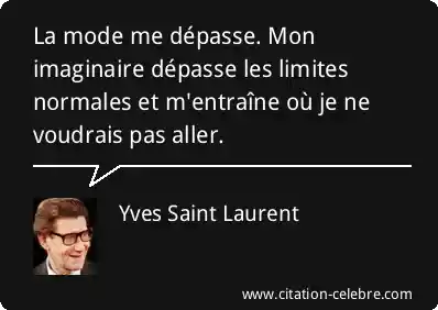 La mode me dépasse. Mon imaginaire dépasse les limites normales et m'entraîne où je ne voudrais pas aller.