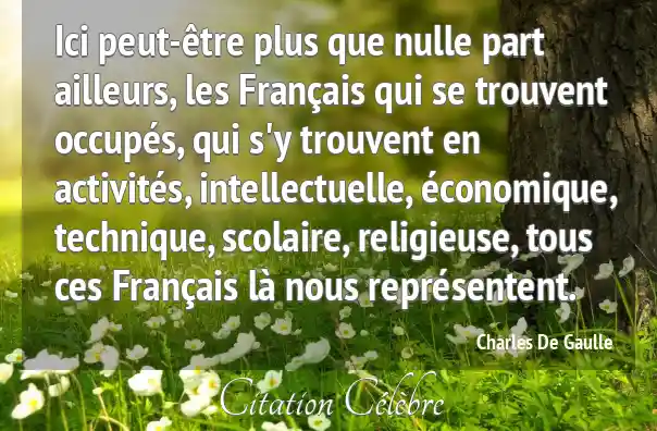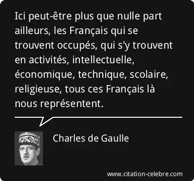 Ici peut-être plus que nulle part ailleurs, les Français qui se trouvent occupés, qui s'y trouvent en activités, intellectuelle, économique, technique, scolaire, religieuse, tous ces Français là nous représentent.