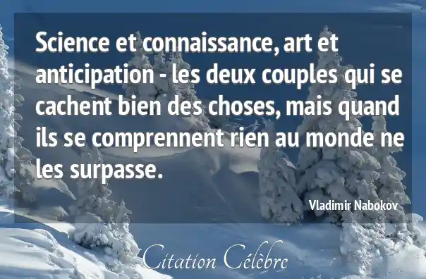 Science et connaissance, art et anticipation - les deux couples qui se cachent bien des choses, mais quand ils se comprennent rien au monde ne les surpasse.