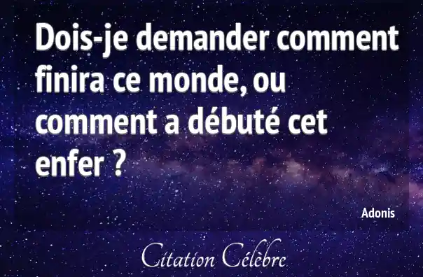 Dois-je demander comment finira ce monde, ou comment a débuté cet enfer ?