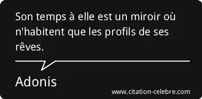 Son temps à elle est un miroir où n'habitent que les profils de ses rêves.