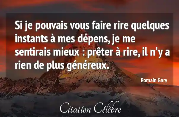 Si je pouvais vous faire rire quelques instants à mes dépens, je me sentirais mieux : prêter à rire, il n'y a rien de plus généreux.