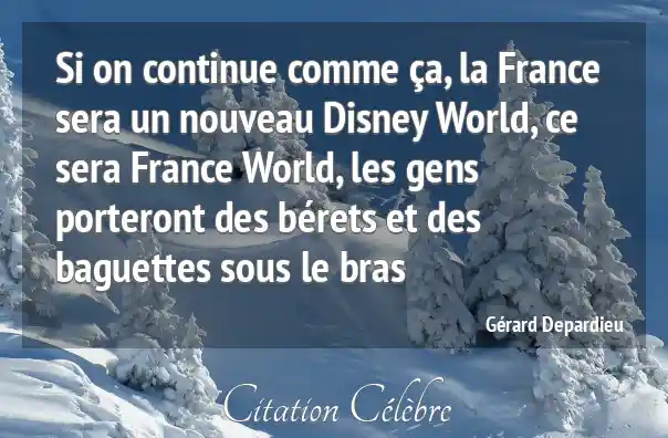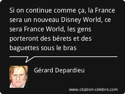 Si on continue comme ça, la France sera un nouveau Disney World, ce sera France World, les gens porteront des bérets et des baguettes sous le bras