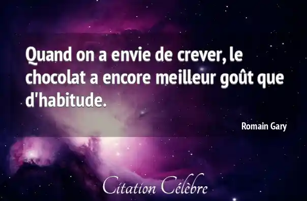 Quand on a envie de crever, le chocolat a encore meilleur goût que d'habitude.