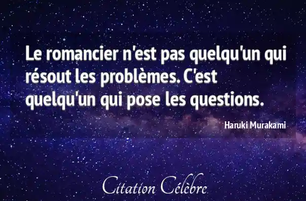 Le romancier n'est pas quelqu'un qui résout les problèmes. C'est quelqu'un qui pose les questions.