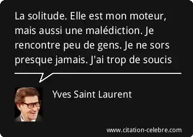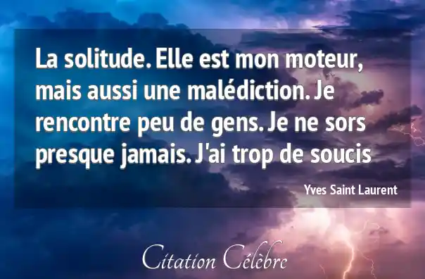 La solitude. Elle est mon moteur, mais aussi une malédiction. Je rencontre peu de gens. Je ne sors presque jamais. J'ai trop de soucis