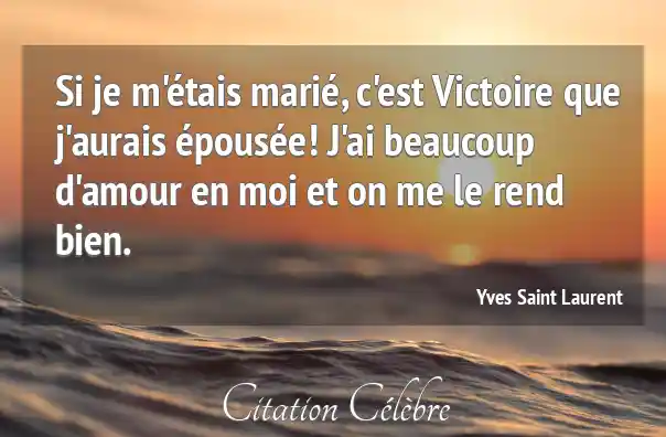 Si je m'étais marié, c'est Victoire que j'aurais épousée! J'ai beaucoup d'amour en moi et on me le rend bien.