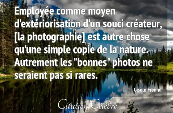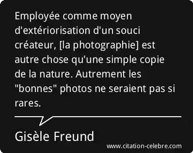 Employée comme moyen d'extériorisation d'un souci créateur, [la photographie] est autre chose qu'une simple copie de la nature. Autrement les "bonnes" photos ne seraient pas si rares.