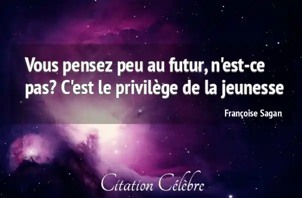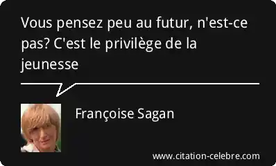 Vous pensez peu au futur, n'est-ce pas? C'est le privilège de la jeunesse