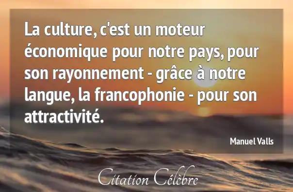 La culture, c'est un moteur économique pour notre pays, pour son rayonnement - grâce à notre langue, la francophonie - pour son attractivité.