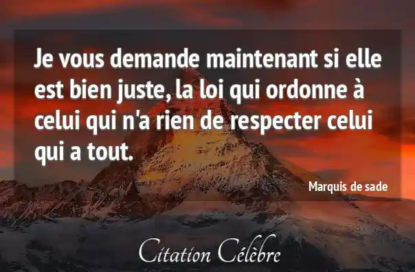 Je vous demande maintenant si elle est bien juste, la loi qui ordonne à celui qui n'a rien de respecter celui qui a tout.