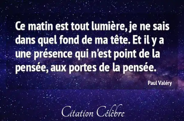 Ce matin est tout lumière, je ne sais dans quel fond de ma tête. Et il y a une présence qui n'est point de la pensée, aux portes de la pensée.