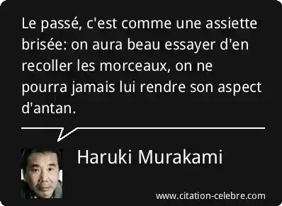 Le passé, c'est comme une assiette brisée: on aura beau essayer d'en recoller les morceaux, on ne pourra jamais lui rendre son aspect d'antan.