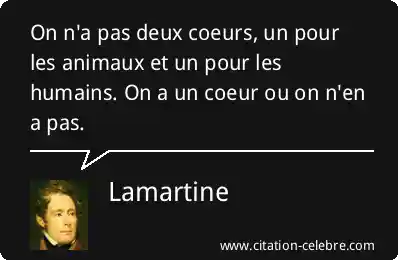 Cette célèbre phrase d'Alphonse de Lamartine affirme que la capacité à ressentir de l'empathie, de la compassion et de la bonté est une qualité unique et indivisible de l'être humain. Le « cœur » représente ici la sensibilité morale et affective. Le sens est clair : on ne peut pas choisir d'être sensible à la souffrance d'une catégorie d'êtres (les humains) et rester indifférent à celle d'une autre (les animaux). Avoir du cœur signifie l'avoir pour tous ceux qui en sont dignes, sans distinction d'espèce.
