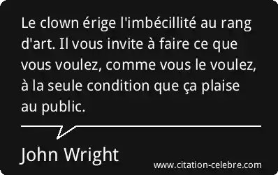 Le clown érige l'imbécillité au rang d'art. Il vous invite à faire ce que vous voulez, comme vous le voulez, à la seule condition que ça plaise au public.