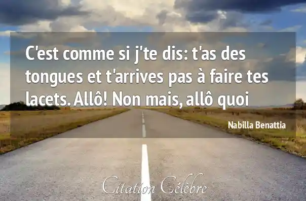 C'est comme si j'te dis: t'as des tongues et t'arrives pas à faire tes lacets. Allô! Non mais, allô quoi