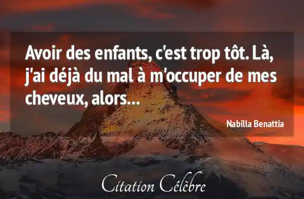 Avoir des enfants, c'est trop tôt. Là, j'ai déjà du mal à m'occuper de mes cheveux, alors...