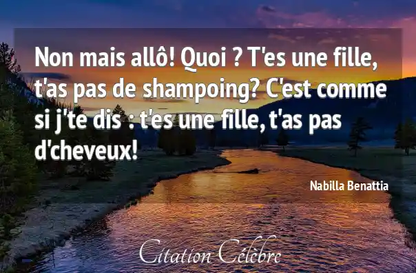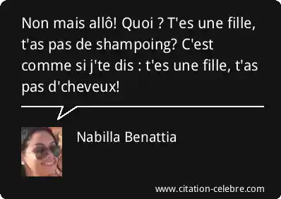Non mais allô! Quoi ? T'es une fille, t'as pas de shampoing? C'est comme si j'te dis : t'es une fille, t'as pas d'cheveux!