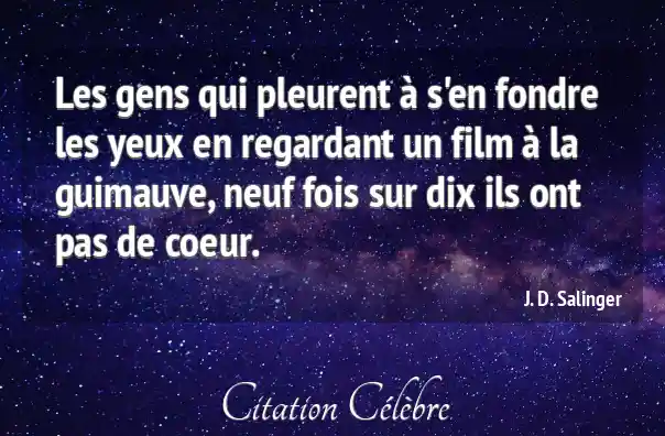 Les gens qui pleurent à s'en fondre les yeux en regardant un film à la guimauve, neuf fois sur dix ils ont pas de coeur.