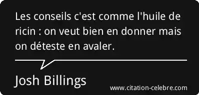 Les conseils c'est comme l'huile de ricin : on veut bien en donner mais on déteste en avaler.