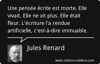 Une pensée écrite est morte. Elle vivait. Elle ne vit plus. Elle était fleur. L'écriture l'a rendue artificielle, c'est-à-dire immuable.