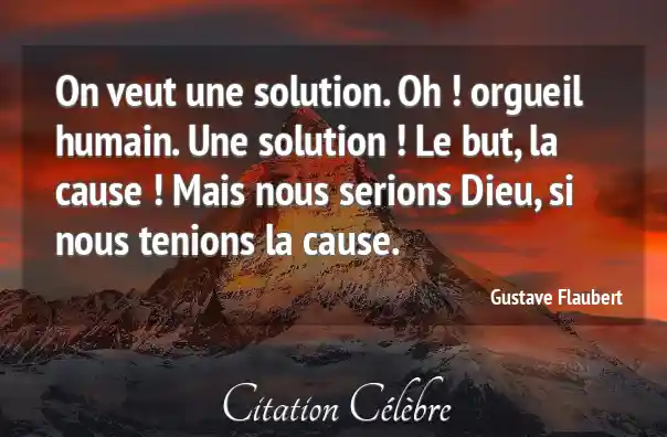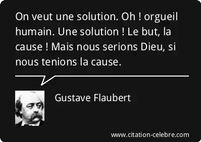 On veut une solution. Oh ! orgueil humain. Une solution ! Le but, la cause ! Mais nous serions Dieu, si nous tenions la cause.