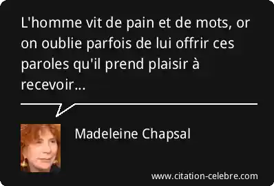 Citation Madeleine Chapsal homme : L'homme vit de pain et de mots, or on oublie...