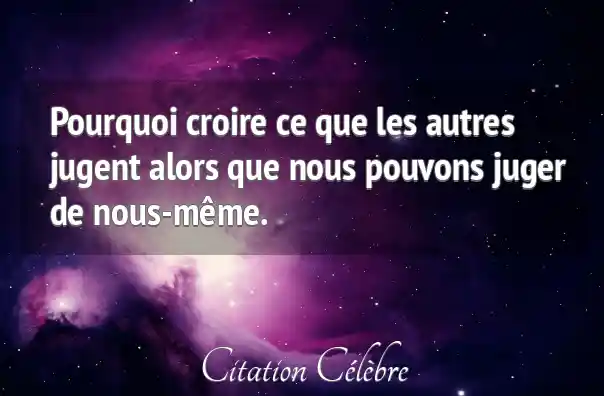 Pourquoi croire ce que les autres jugent alors que nous pouvons juger de nous-même.